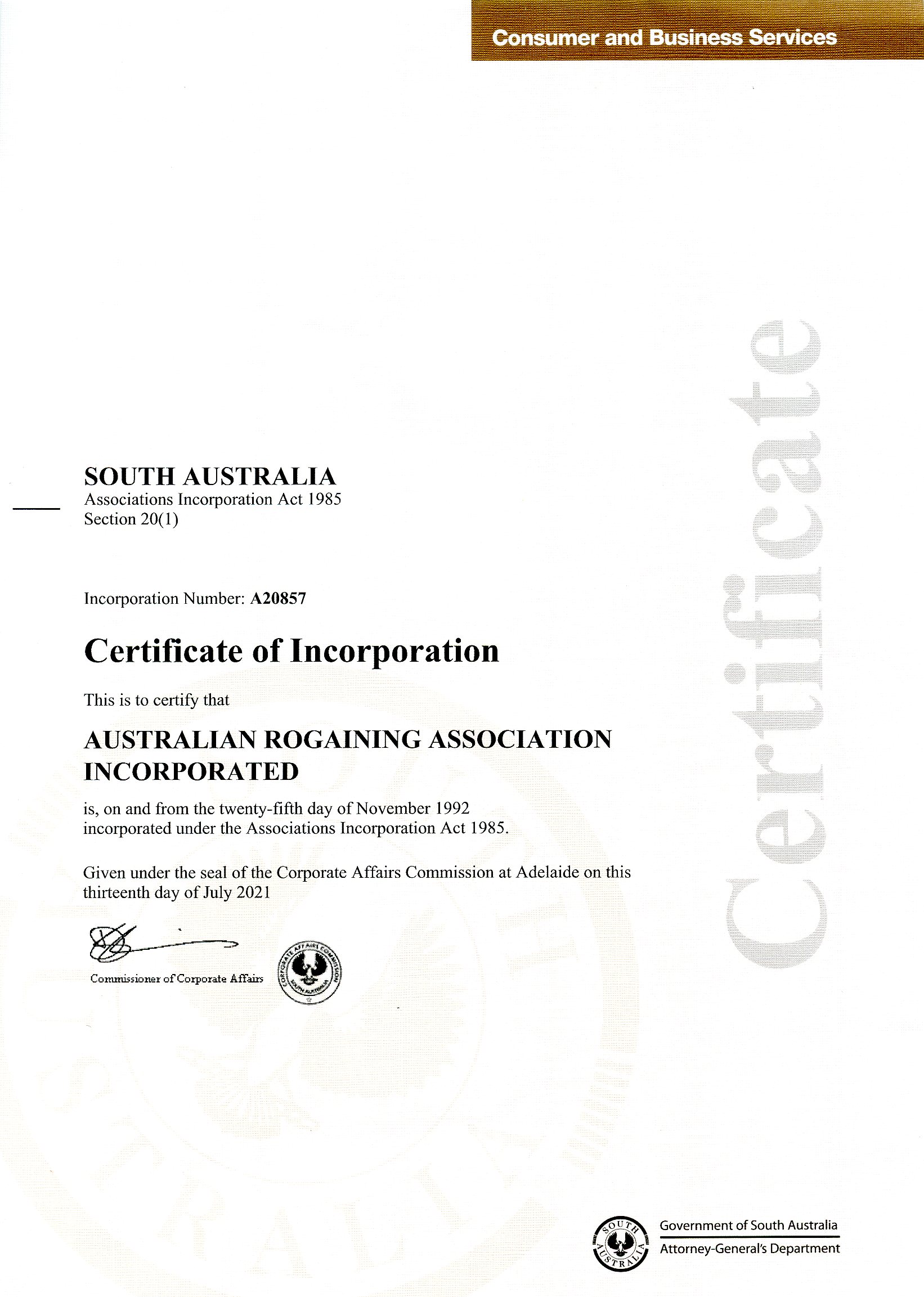 ARA is incorporated in South Australia. ARA's Certificate of Incorporation